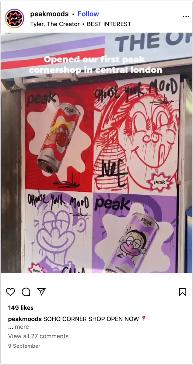 The result was a vibrant fusion of music, art, and culture, positioning Peak Mood Drinks as a brand deeply connected to the energy of contemporary UK creativity.