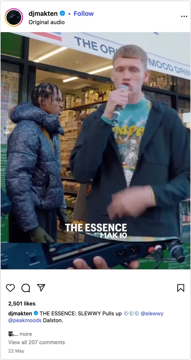 To amplify the campaign online, I produced a series of live performance TikToks and Instagram Reels in partnership with DJ Mak 10 and Toddla T’s Steeze Factory, featuring performances from Jords, Subten, Slewwy, DeeRiginal, Mez, Mimi Mxnro, and Louie Rei (WSTRN).